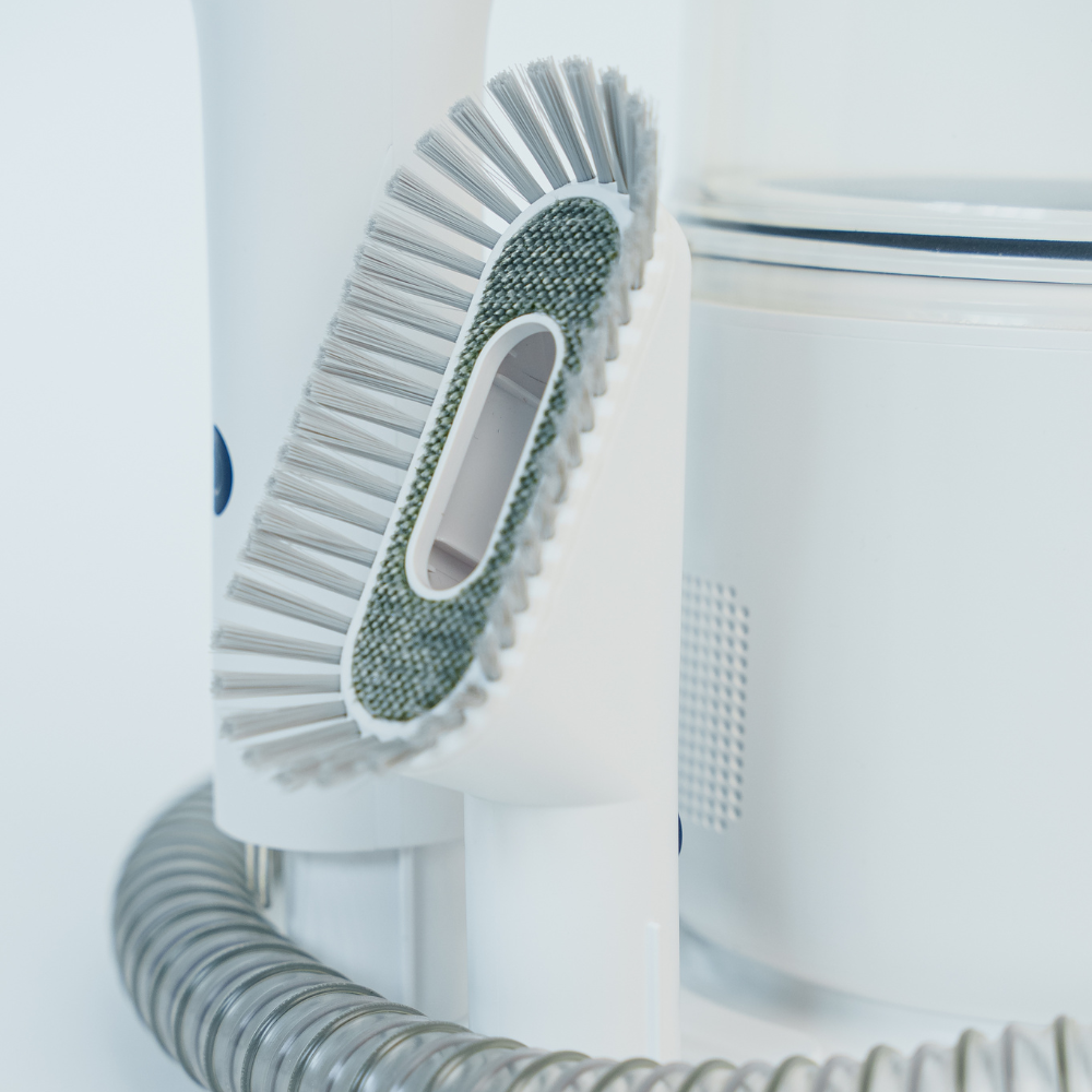 Det indbyggede støvsugersystem samler hårene direkte, så du slipper for hår på møbler og gulve. Den lave lyd gør, at selv nervøse kæledyr føler sig trygge under plejen.